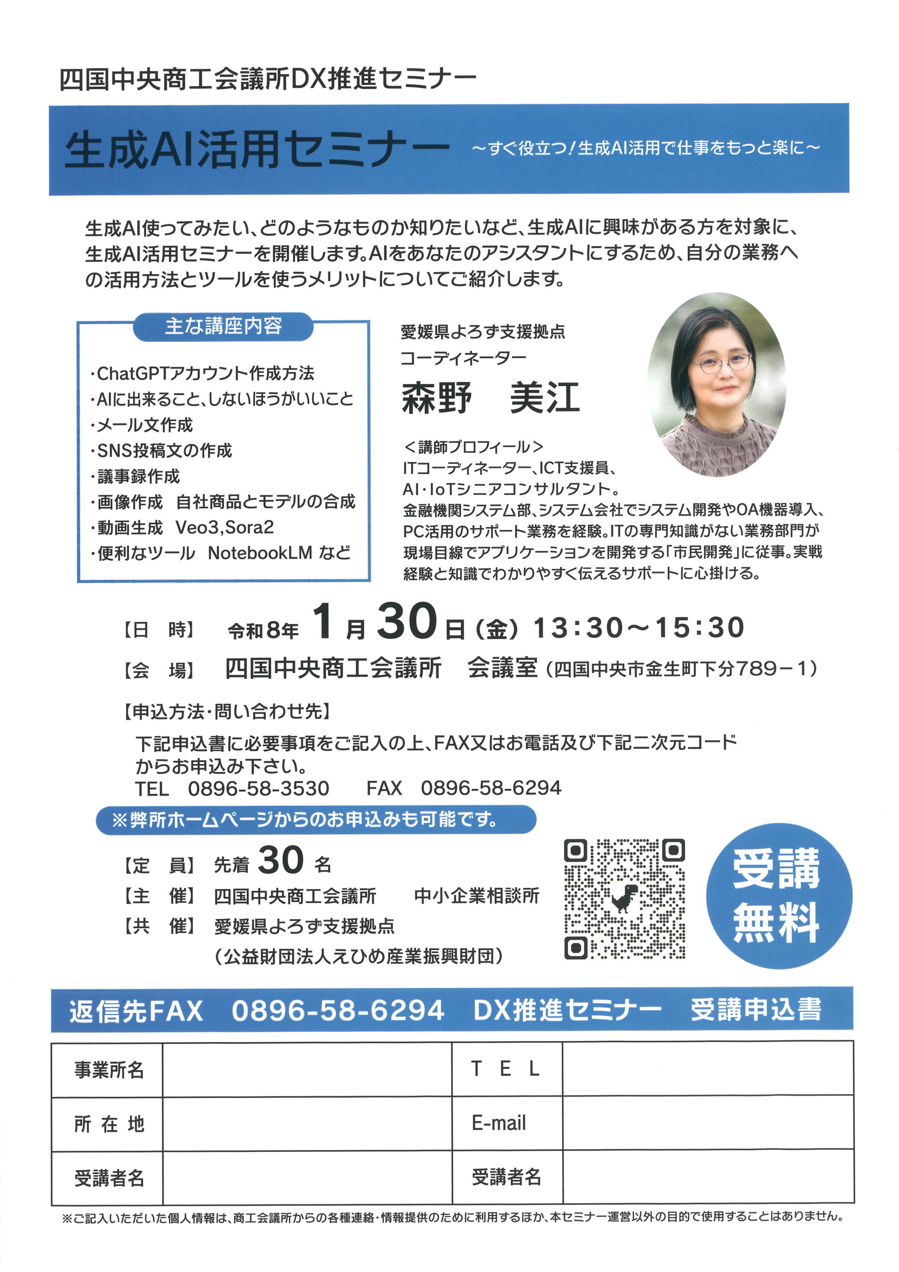 | 講 師 | 森野 美江 氏 / 愛媛県よろず支援拠点 ITコーディネーター |